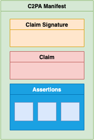As illustrated below, the manifest contains assertions about the asset's creation and history, wrapped up with additional information into entities called claims that are digitally signed with an actor's private key (the claim signature).